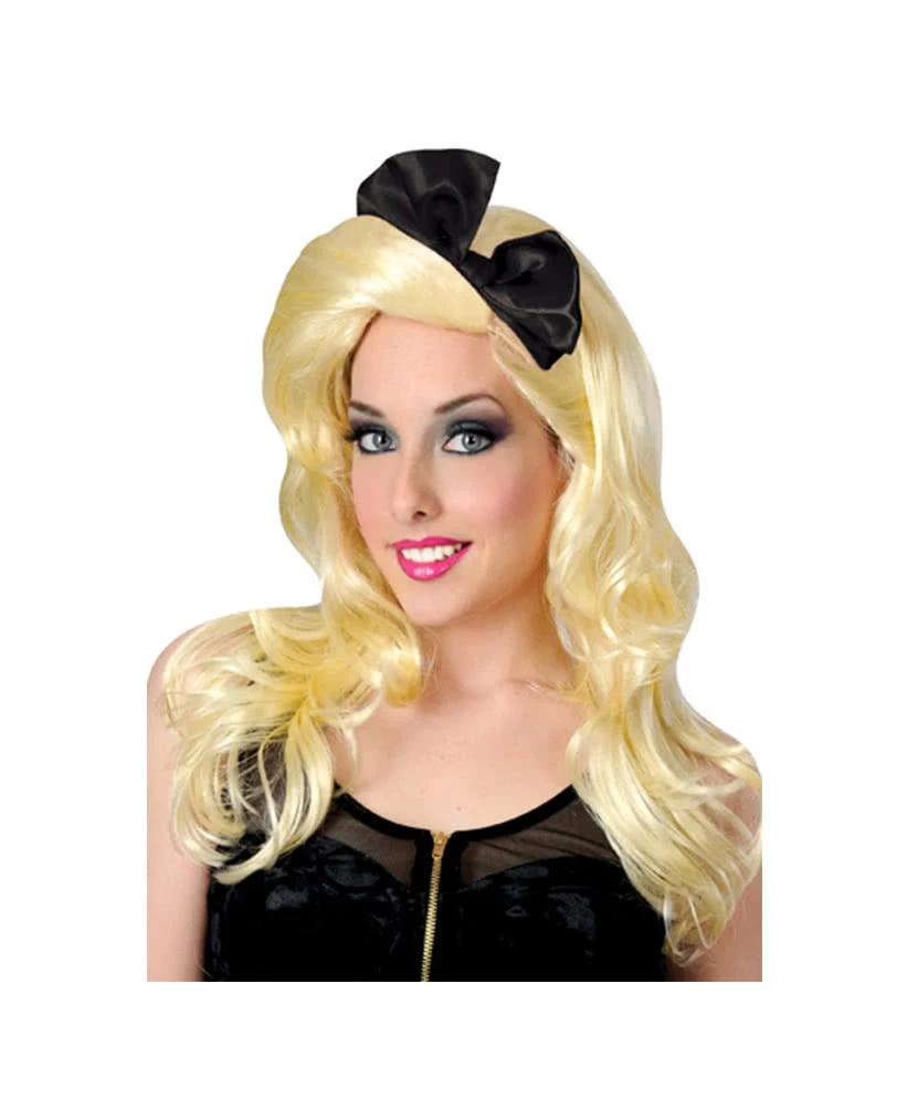 80er Popstar Perücke mit schwarzer Schleife