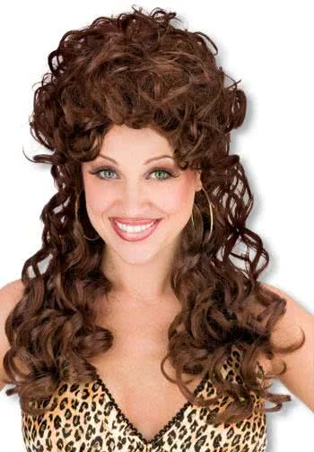 Fantastische, braune Lockenperücke mit voluminösen Oberkopf und schulterlangen Locken. Perfekt geschminkt und in High Heels geschlüpft, habt ihr den ultimativen Peggy Bundy Look und du kannst als Trophy Wife auftreten.