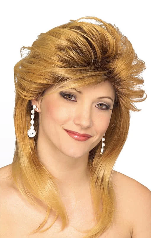Die Maklerin Perücke besteht aus Kunsthaar. Das Haar ist in hell- und dunkelblonden Strähnen gefärbt. Zur rechten Seite toupiert zieht sich der Pony. Das Haar ist stufig geschnitten und hat eine Länge von 43cm. Die Geschäftsfrau Perücke hat einen Innenumfang von ca. 54cm. Als Kostüm für die Perücke eignet sich der Arzt Labor Kittel Unisex S mit der Monster Schnaps Spritze.
