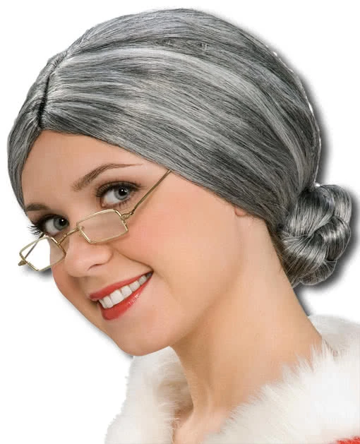 Graue Oma Perücke mit Knoten