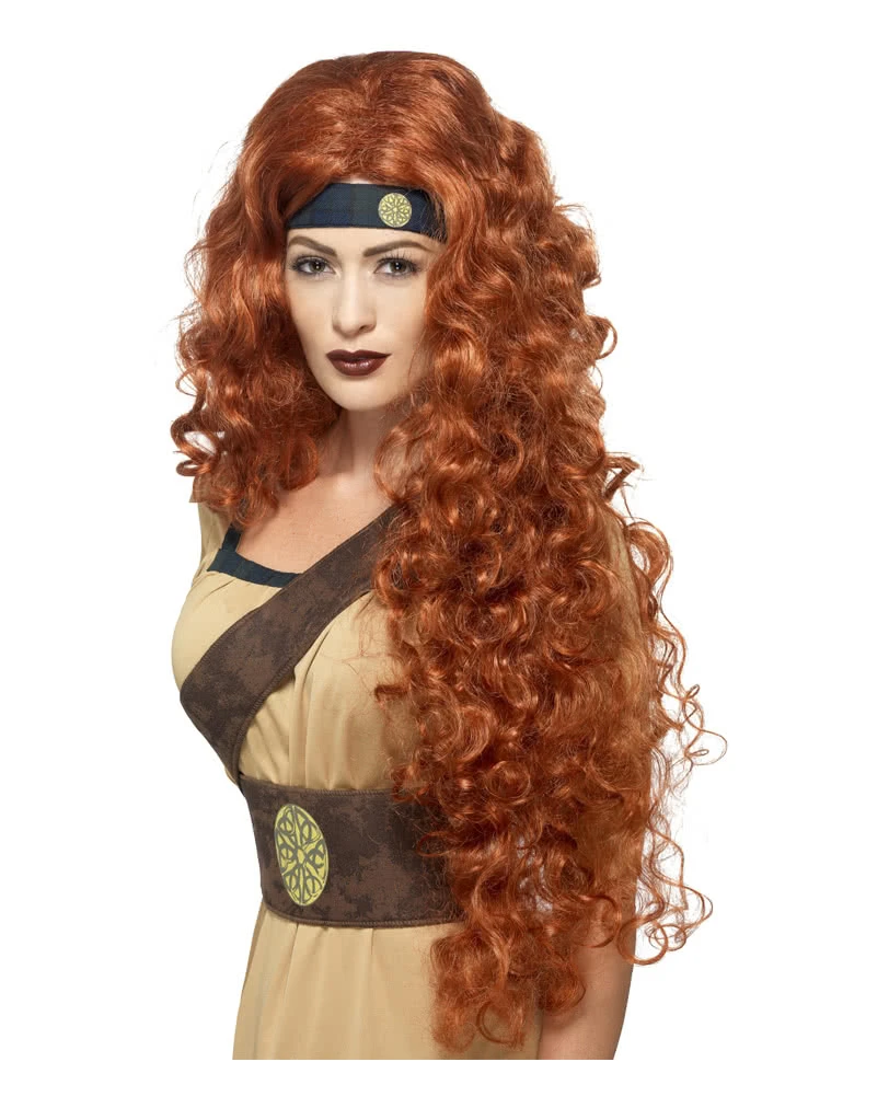Die Lockige Langhaar Perücke ist kupferfarben und circa 70 cm lang. Für den passenden Sitz Frisur sorgt ein Perückenstrumpf Hautfarben Netz, damit sie beim Schaulaufen auf Kostümpartys im Xenia Amazonen Kriegerin Premium Kostüm Gr. XL nicht verrutscht.
