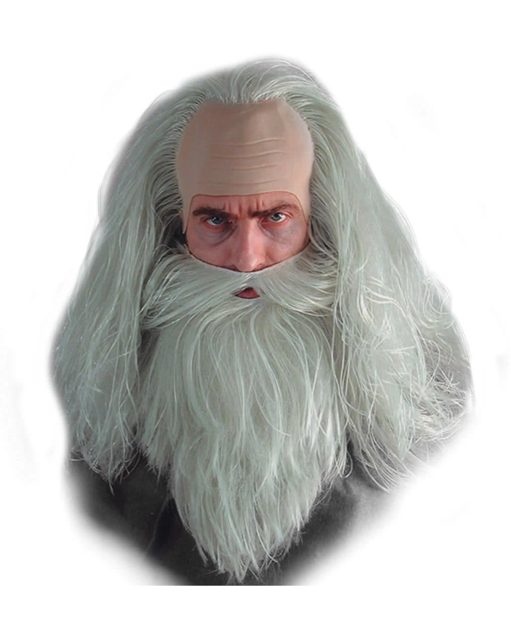 Langes, graues wallendes Haar mit hoher Stirn und ein langer Bart zeichnen diese Magier Perücken-Set aus. Mit diesem Perücken / Bartset ist Dir die perfekte Haarpracht für Kopf und Bart eines Zauberers sicher. Die Glatze ist aus weichem Latex und die eingearbeiteten Haare und Bart sind aus Kunsthaar.