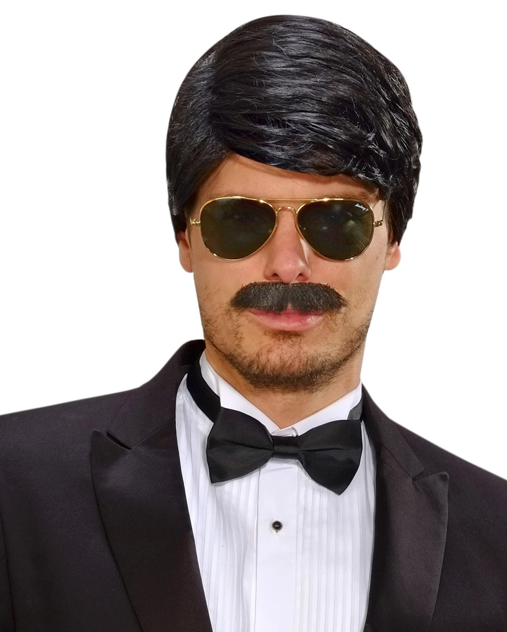 Playboy Herrenperücke mit Schnäuzer Schwarz