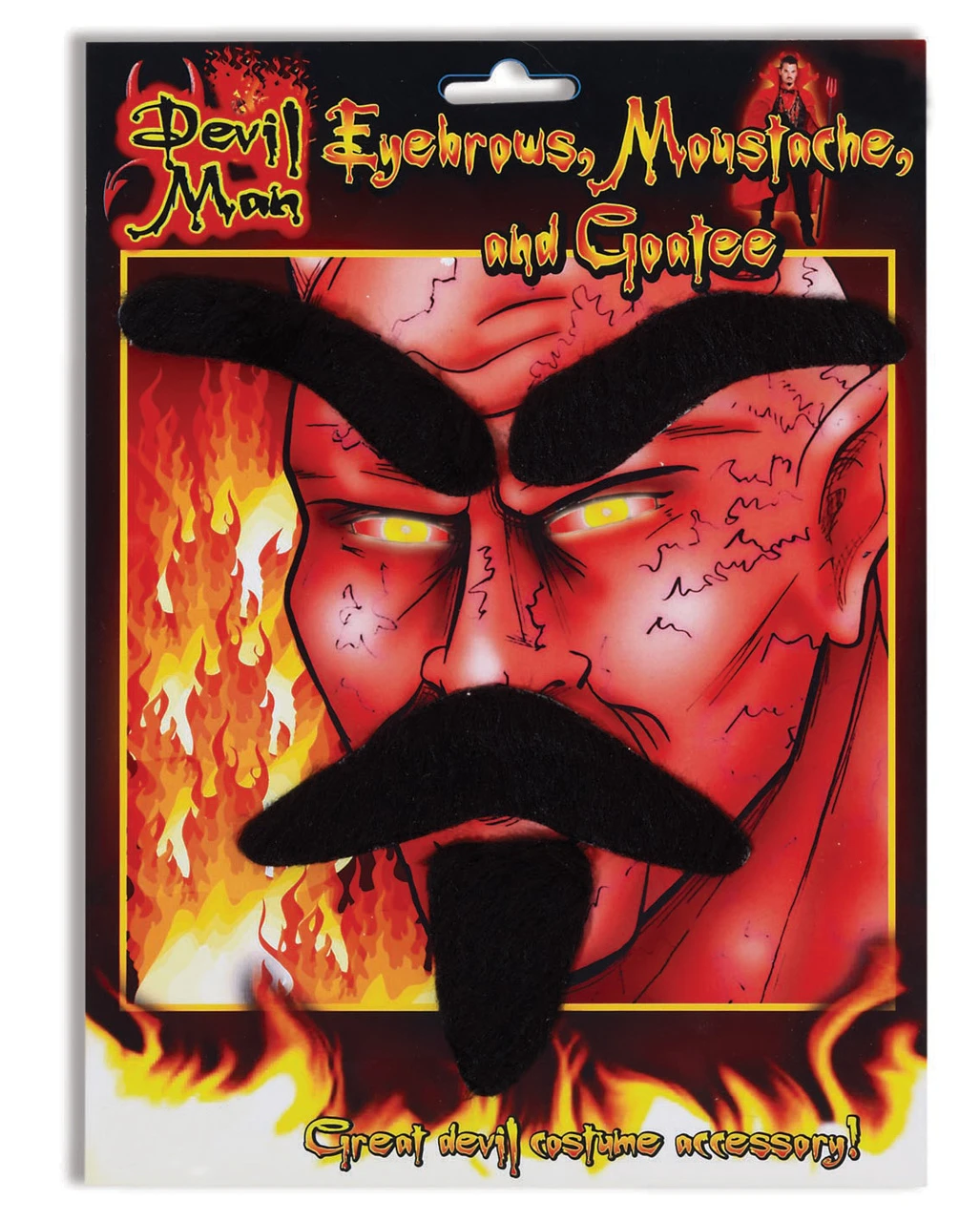 Selbstklebende schwarze Augenbrauen mit Bart als Teufel Accessoire