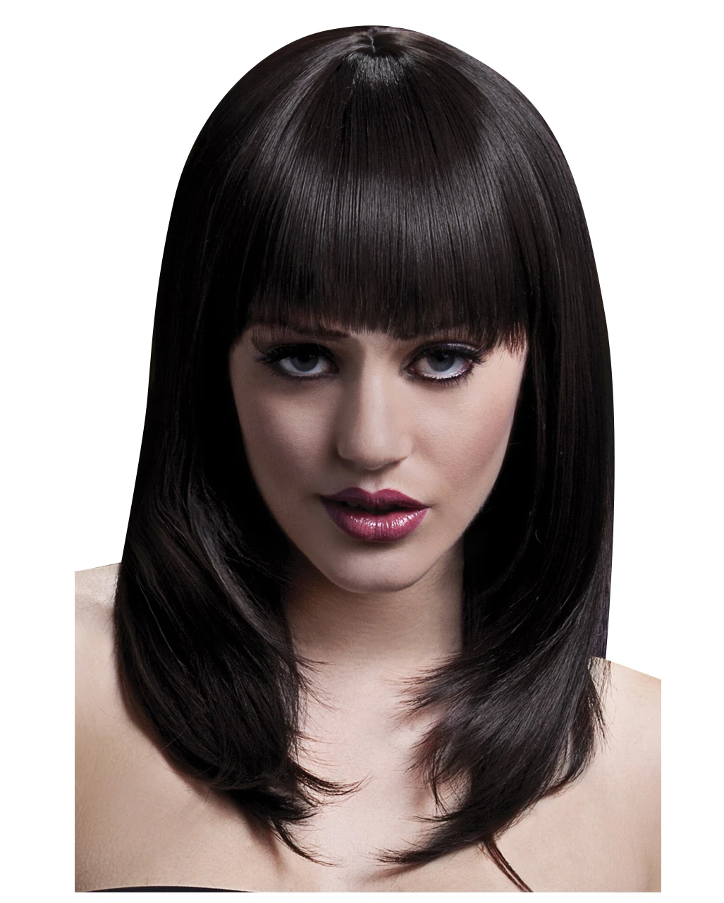 Die hübsche Kunsthaar Perücke in dunkelbraun verpasst dir einen elegante Business Look. Der mittellange Schnitt mit dem geraden Pony ist super angesagt, somit ist diese dunkelbraune Perücke vor allem für Theater, Film und Fernsehaufnahmen, sowie für Fotoshootings sehr beliebt.
