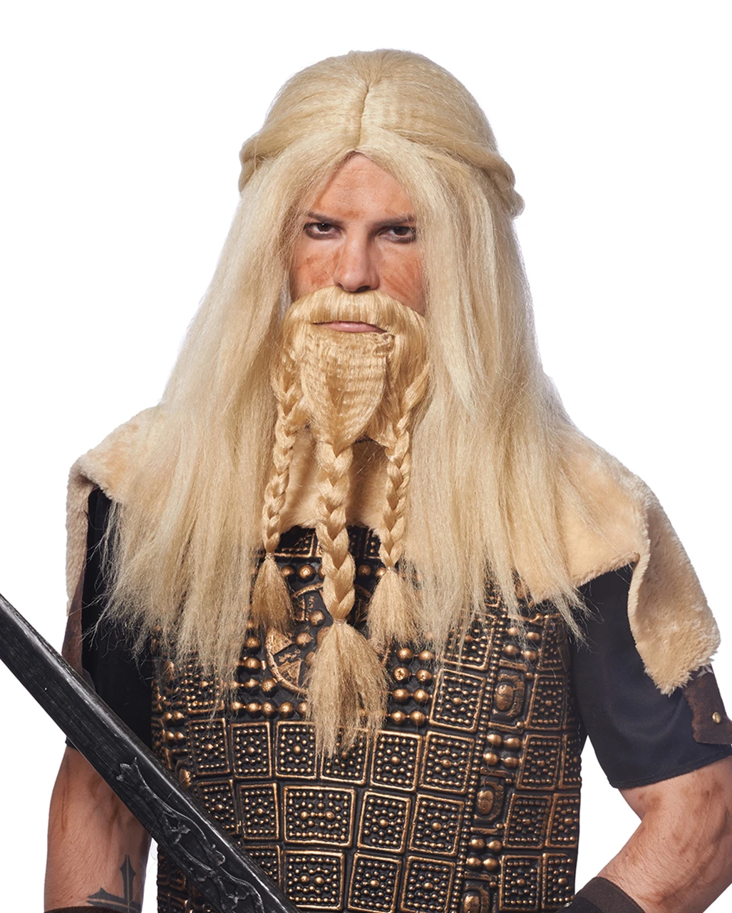 Eindrucksvolle Wikinger Perücke mit geflochtenem Bart als Kostümzubehör für Halloween